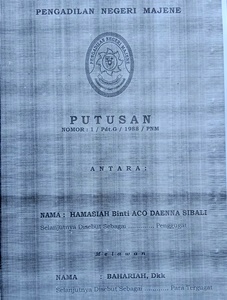 Suparman menganggap bahwa putusan yang dikeluarkan oleh Pengadilan Negeri Majene, maupun dari Pengadilan Tinggi hasil sengketa antara pihak Hamasiah Binti Aco melawan Bahariah sudah dapat dikategorikan inkrah.
