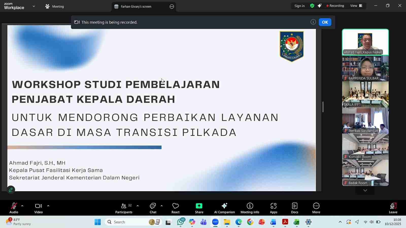 MAMUJU – Badan Perencanaan Pembangunan, Riset dan Inovasi Daerah (Bapperida) Provinsi Sulawesi Barat mengikuti Workshop Studi Pembelajaran Penjabat Kepala Daerah Mendorong Perbaikan Layanan Dasar di Masa Transisi Pilkada secara virtual, Rabu (10/12/2025). Kegiatan diselenggarakan oleh Pusat Fasilitasi Kerja Sama Sekretariat Jenderal Kementerian Dalam Negeri.