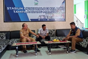 Mamuju — Badan Penanggulangan Bencana Daerah (BPBD) Provinsi Sulawesi Barat (Sulbar) melakukan kunjungan ke BMKG Stasiun Meteorologi Kelas II Tampa Padang Mamuju, Sulbar, Senin (13/10). Kunjungan ini diwakili oleh Penata Penanggulangan Bencana Ahli Muda Inaldy L.S. Si’lang dan Penelaah Teknis Kebijakan Muhammad Ali.