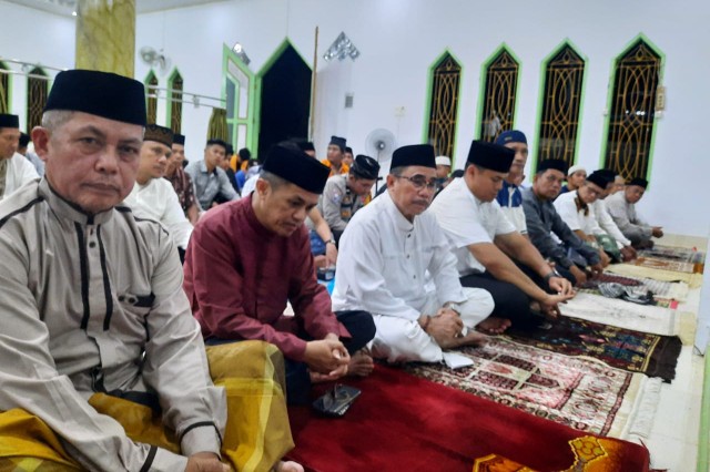 Terlihat Kapolres Majene AKBP Toni Sugadri rombongan Bupati Majene menggelar kegiatan safari Ramadhan di Masjid Miftahul Hikmah, Kamis (6/4/23).