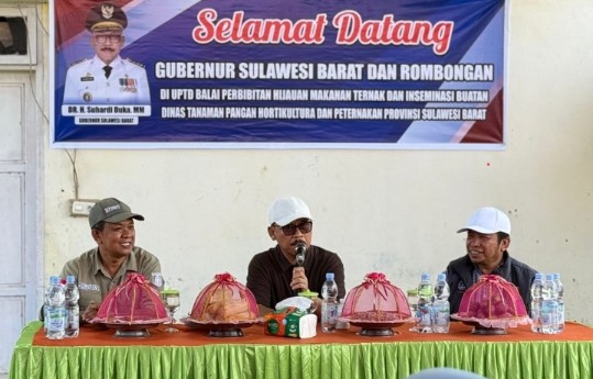 Kunjungan Gubernur Sulbar, di dampingi Sekretaris dinas Tanaman Pangan, Hortikultura dan Peternakan (DTPHP) Provinsi Sulawesi Barat, drh. Agus Rauf bersama Kepala UPTD Balai Perbibitan Hijauan Makanan Ternak dan Inseminasi Buatan (BPHMTIB) Nurdin, Kepala Bidang Peternakan dan Kesehatan Hewan Nur Kadar, serta Kepala Bidang Tanaman Pangan Titiek Anas.