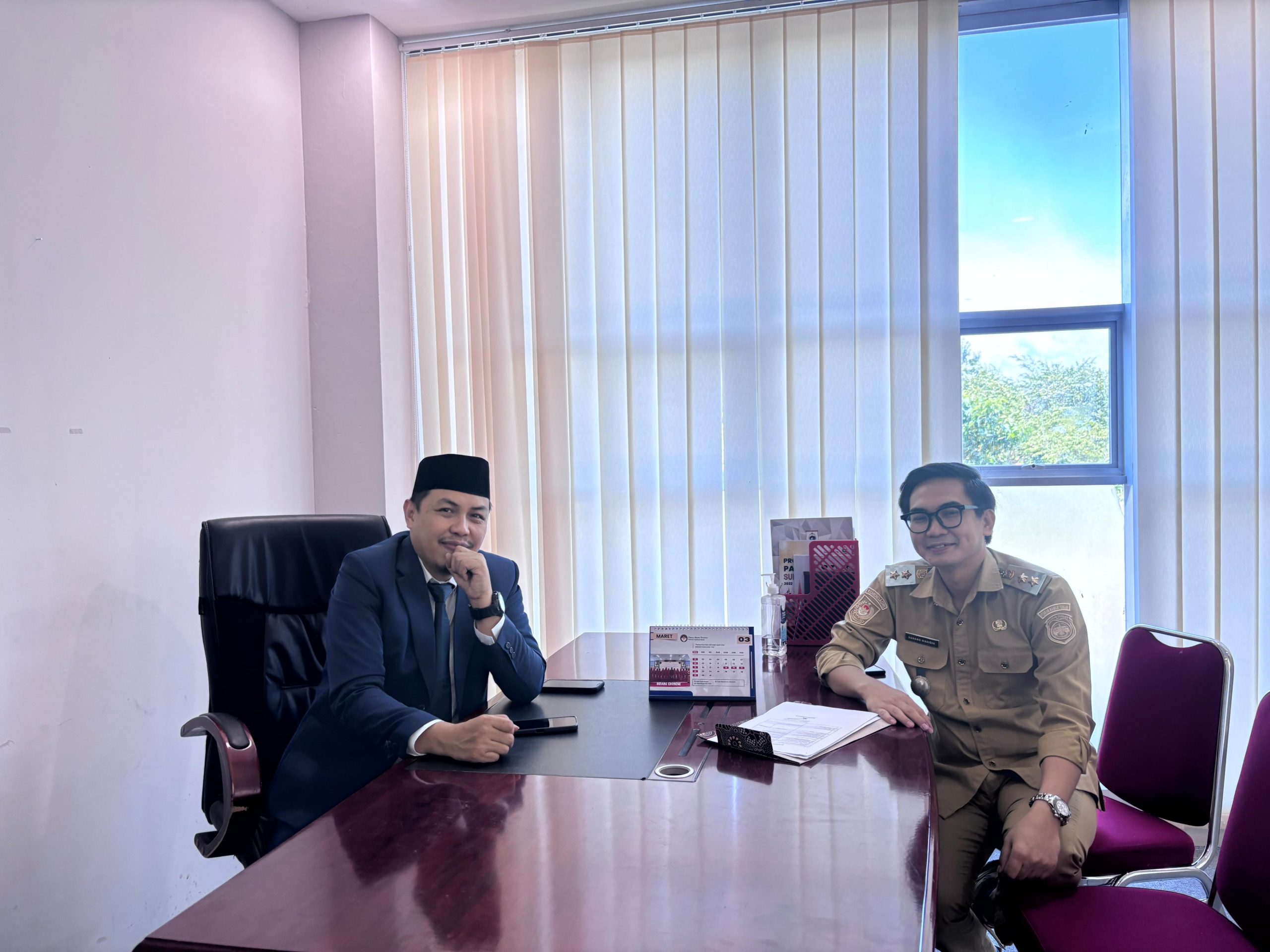 MAMUJU – Kepala Bidang Pemasaran dan Industri Pariwisata Dinas Kepemudaan, Olahraga, Pariwisata dan Ekonomi Kreatif (Dispoparekraf) Provinsi Sulawesi Barat, Abdi Yansya, menerima kunjungan koordinasi Kepala Desa Bambamanurung, Nanang Wahidin, di ruang kerjanya, pada Senin, 9 Maret 2026.