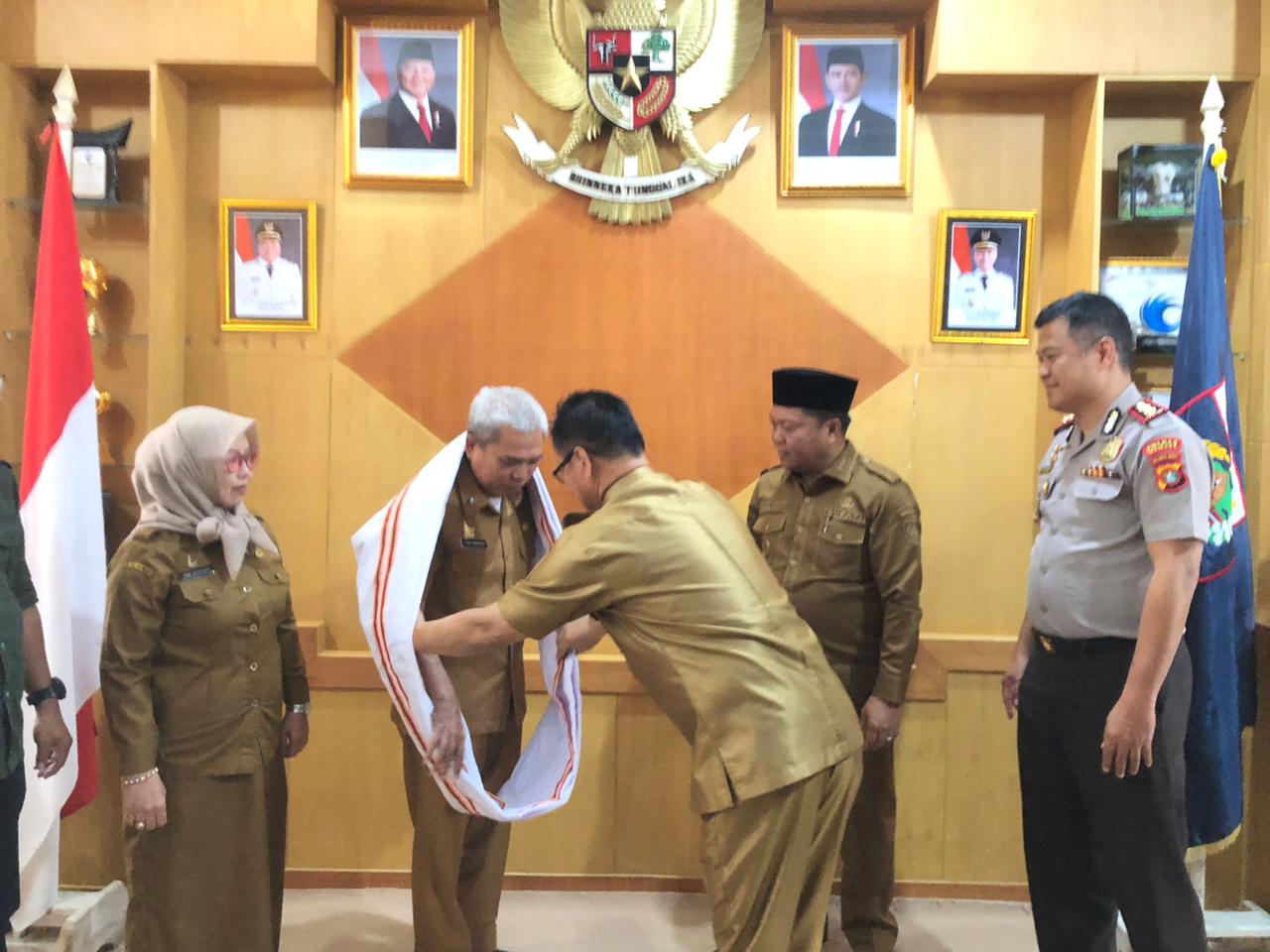 Dalam suasana penuh kekeluargaan, penyambutan tersebut ditandai dengan pemberian cendera mata berupa sarung khas Mamasa yang dikalungkan langsung oleh Bupati Mamasa, didampingi Wakil Bupati Mamasa, sebagai simbol penghormatan dan kearifan lokal daerah.