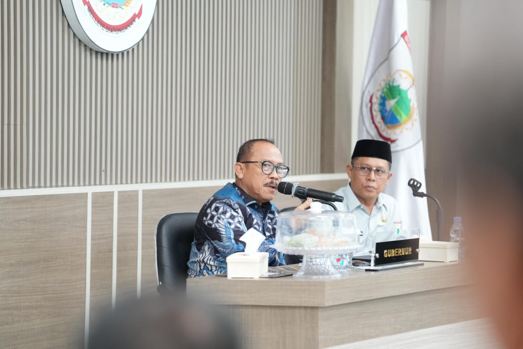 MAMUJU – Gubernur Sulbar Suhardi Duka memimpin rapat pimpinan bersama Kepala Organisasi Perangkat Daerah (OPD) di Ruang Theater Lantai 2 Kantor Gubernur Sulbar, Jumat 14 November 2025.