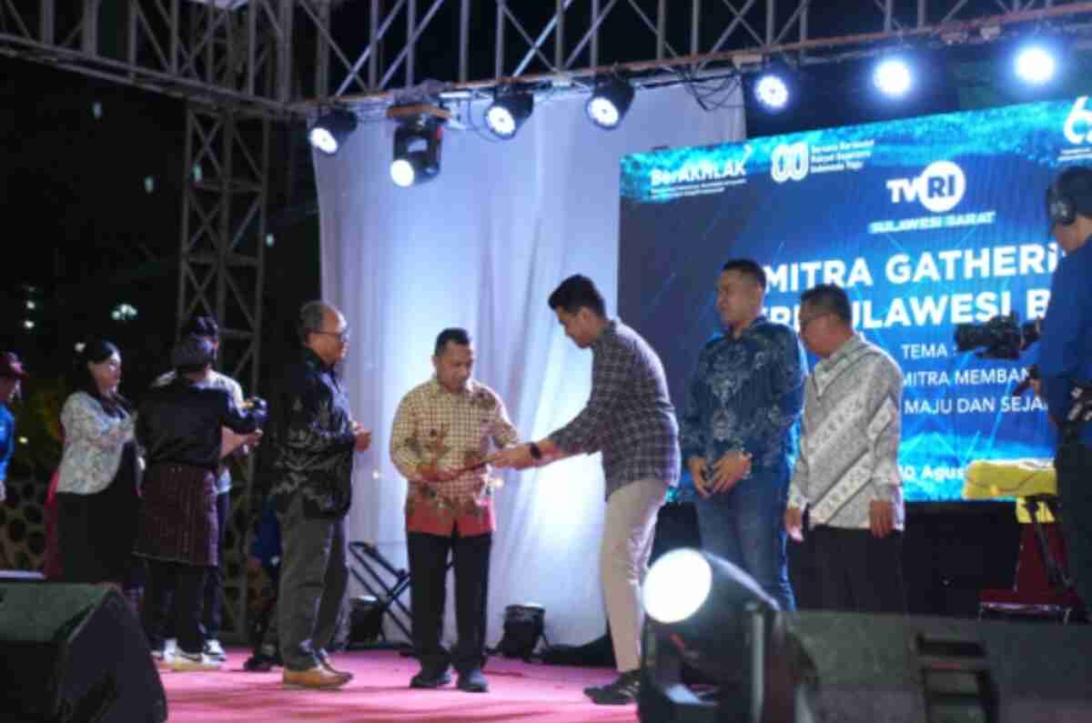 MAMUJU –Plt.Kepala Dinas Komunikasi Informatika Statistik dan Persandian (Kominfo SP) Sulbar, Muhammad Ridwan Djafar mewakili Gubernur Sulbar Suhardi Duka menghadiri kegiatan Mitra Gathering sekaligus malam puncak perayaan Hari Ulang Tahun ke-14 TVRI Sulawesi Barat, di Kantor TVRI Stasiun Sulbar, Minggu malam, 10 Agustus 2025.