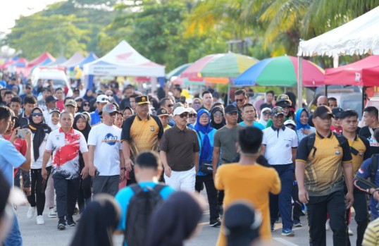 MAMUJU – Dalam rangka menyemarakkan Hari Jadi Provinsi Sulawesi Barat ke-21, Gubernur Sulbar, Suhardi Duka bersama masyarakat mengikuti jalan santai dari Anjungan Pantai Manakarra hingga Jalan Arteri, Mamuju, Minggu pagi, 21 September 2025.
