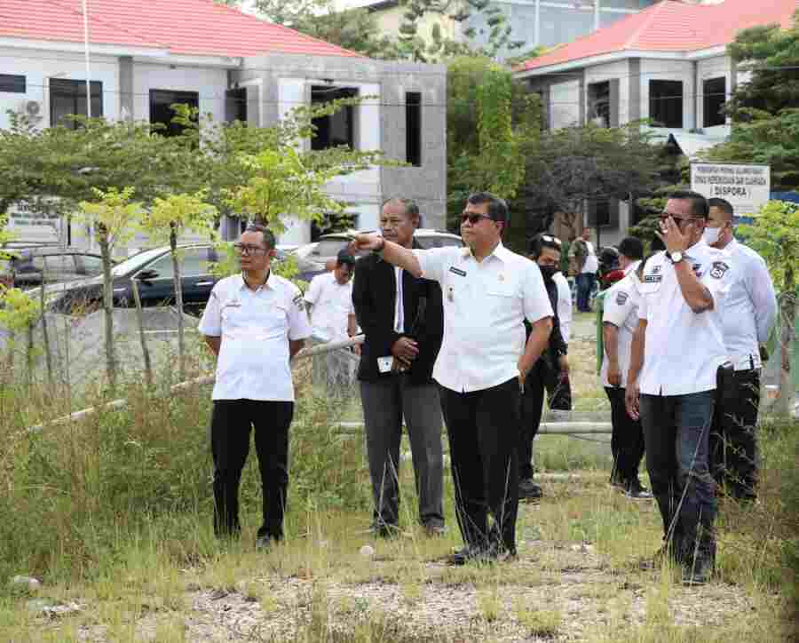 Mamuju — Sekprov Sulbar Muhammad Idris meninjau lokasi persiapan pembangunan Sport Area di Kompleks Kantor Gubernur Sulbar, Rabu 25 Januari 2023.