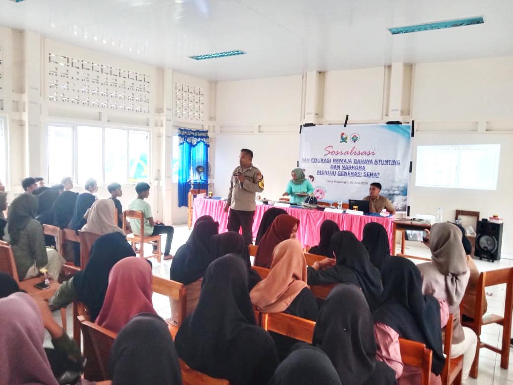 Dalam kegiatan tersebut, Polsek Malunda turut serta memberikan sosialisasi mengenai bahaya stunting dan pemahaman tentang narkoba kepada kalangan remaja yang ada di Desa Kayuangin.