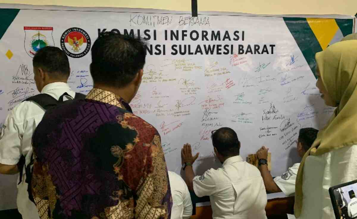 Komitmen ini dinyatakan dengan penandatangan spanduk pada akhir acara sosialisasi keterbukaan informasi publik yang berlangsung tiga hari di Polewali, 6-8 Mei 2025 yang dilaksanakan Komisi Informasi Provinsi bekerjasama Dinas Kominfopers (Komunikasi Informatika Persandian dan Statistik) di Hotel Al-Ikhlas Pekkabata.