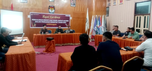 MAJENE, SULBAR99NEWS.ID– Komisi Pemilihan Umum (KPU) Majene, Sulawesi Barat menggelar rapat koordinasi (rakor) persiapan pendaftaran bakal pasangan calon bupati dan wakil bupati pada Pilkada serentak tahun 2024.