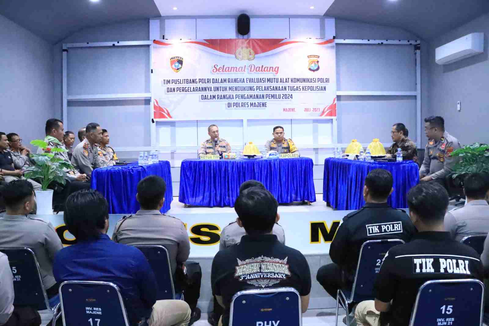 Adapun tujuan kedatangan Tim Puslitbang Polri dalam rangka evaluasi alat komunikasi Polri dan pergelarannya untuk mendukung pelaksanaan tugas Kepolisian dalam rangka Pengamanan Pemilu 2024 di Polres Majene.