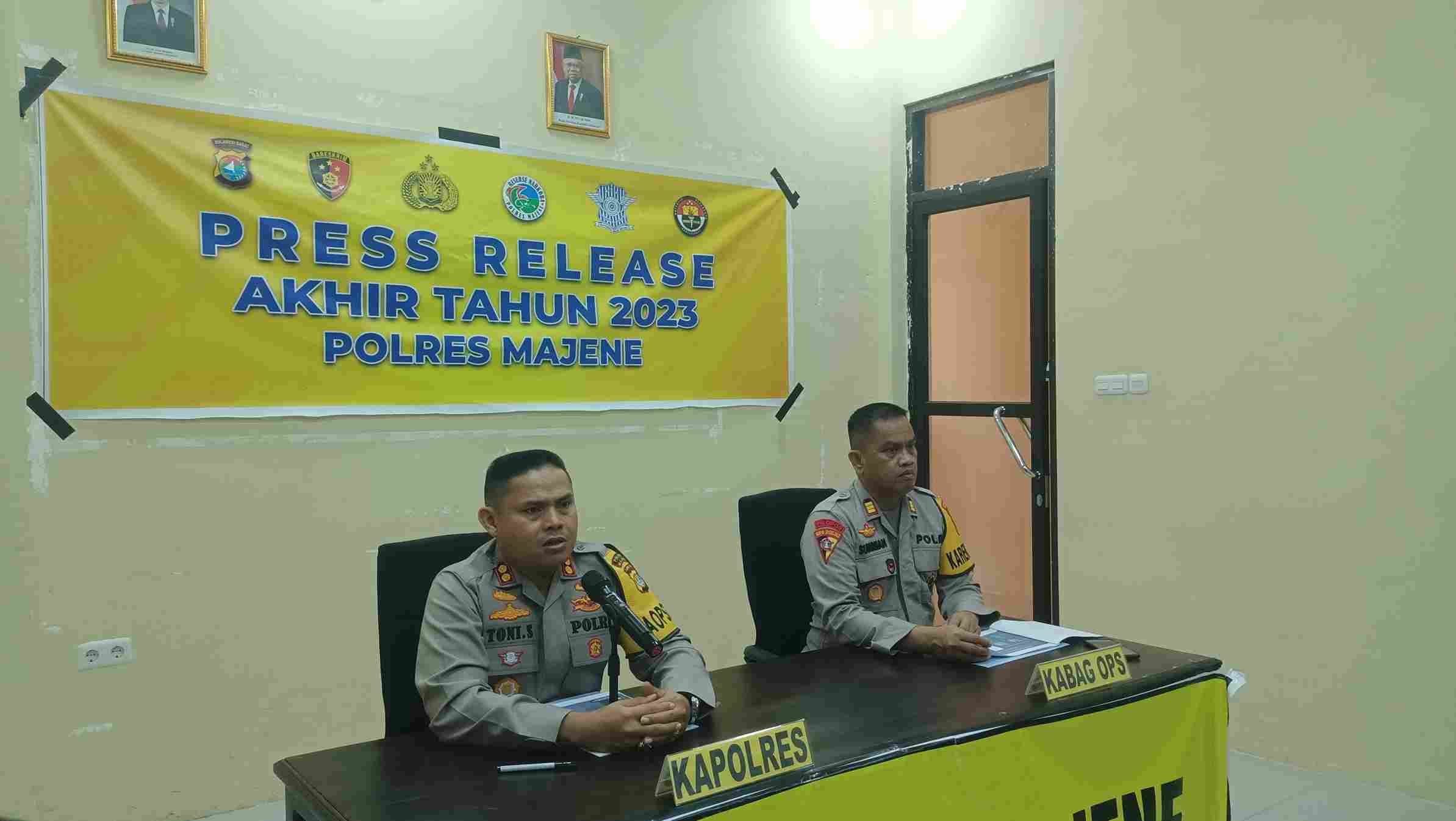 SULBAR99NEWS.COM, MAJENE – Jelang pergantian tahun 2023, Polres Majene menggelar Press Release akhir tahun terkait situasi kamtibmas serta pencapaian sepanjang tahun 2023, Jumat (29/12/2023) di aula Mapolres Majene.