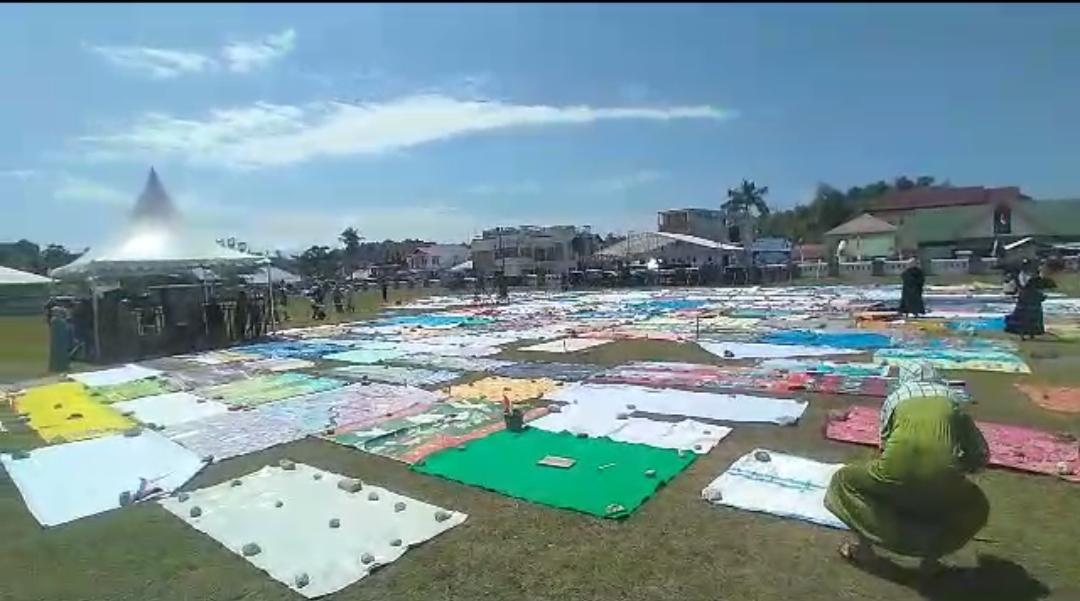 Terlihat saat sejumlah ini ibu-ibu sudah berdatangan di Stadion Prasamya Majene untuk membawa dan menggelar tikar maupun terpal yang nantinya akan digunakan sebagai alas untuk mengikut Tabligh Akbar tersebut.