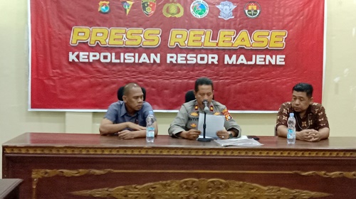 Majene, Sulbar.99news.id—Kapolres Majene, melalui Kasi Humas, didampingi KBO Satreskrim Polres Majene, Ipda Ahmad, bersama penyidik Reskrim, Aiptu Darwis melaksanakan Press Release hasil Operasi Sikat Marano tahun 2025, di ruang data Polres Majene, Jumat (16/5/2025).