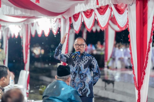 “Kita belajar dari sejarah, banyak raja-raja Nusantara yang kalah melawan penjajah karena saat itu belum ada persatuan. Tapi setelah kebersamaan terbangun, penjajah bisa diusir,” ucap Gubernur Suhardi Duka dalam sambutannya di lokasi kegiatan di Anjungan Pantai Manakarra Mamuju, Minggu malam, 17 Agustus 2025.