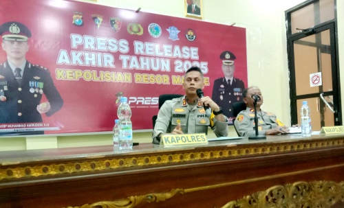 Kapolres Mjene, AKBP Muhammad Amiruddin, Didampingi Wakapolres, Kompol Agussalim Arsyad Saat Rilis Akhir Tahun 2025