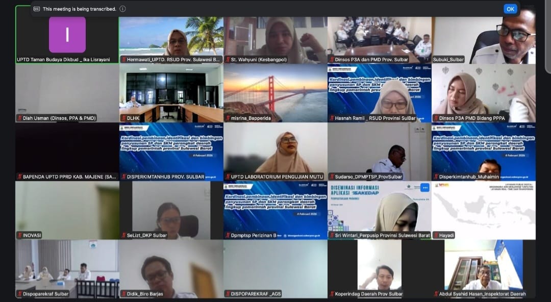 MAMUJU-Pemerintah Provinsi Sulawesi Barat melalui Biro Organisasi dan Tata Laksana (Ortala) menggelar Rapat Koordinasi Pembinaan dan Identifikasi Penyusunan Standar Pelayanan (SP) dan Survei Kepuasan Masyarakat (SKM) secara daring melalui Zoom Meeting, Rabu (4/2/2025). Kegiatan ini diikuti oleh OPD dan UPTD se-Provinsi Sulawesi Barat serta menghadirkan Kepala Bagian Ortala, Bapak Subuki, sebagai narasumber utama.