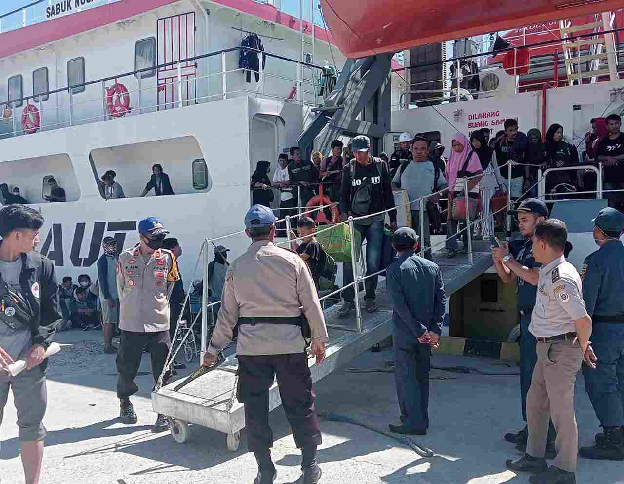 Penumpang KM. Sabuk Nusantara 93 mengapresiasi kehadiran Sat. Polair Polres Majene yang memberikan perhatian dan pelayanan maksimal. Mereka merasa lebih tenang dan yakin selama perjalanan menuju tujuan akhir mereka.