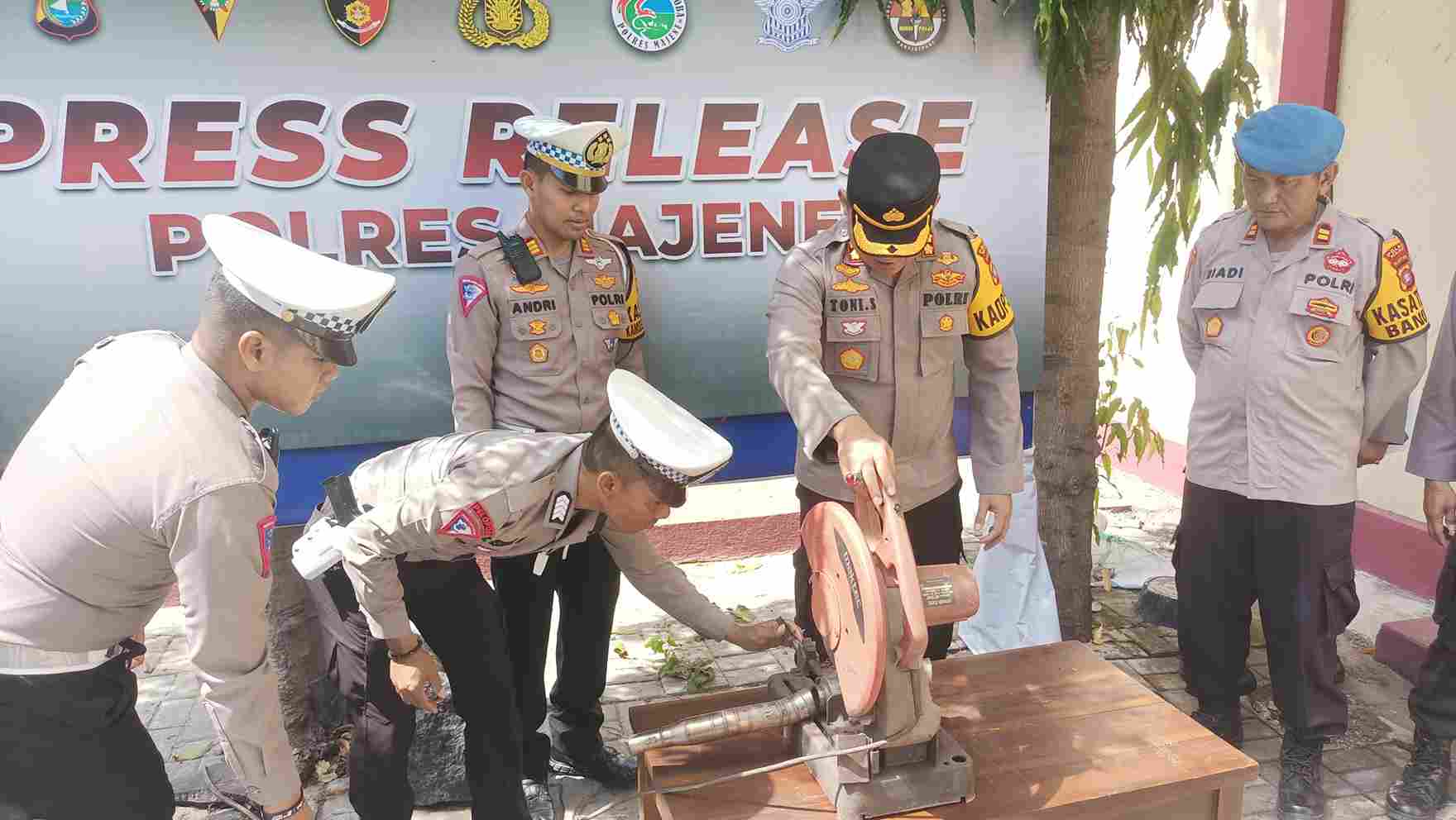 Satlantas Polres Majene Hancurkan Puluhan Knalpot Brong