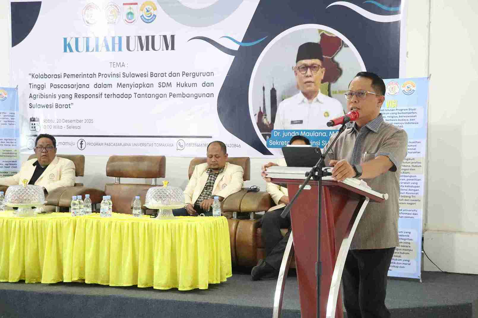 MAMUJU – Sekprov Junda Maulana menjadi narasumber Kuliah Umum Program Pascasarjana Universitas Tomakaka Mamuju, Sabtu, 20 Desember 2025.