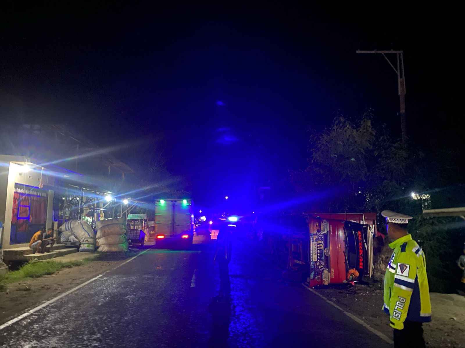 Truk Terguling, Satlantas Polres Majene Respon Cepat Datangi TKP Di Dusun Luaor
